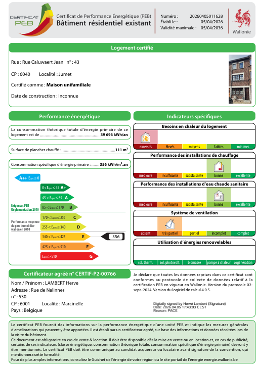• 356 kwh/m².an | Classe énergétique E