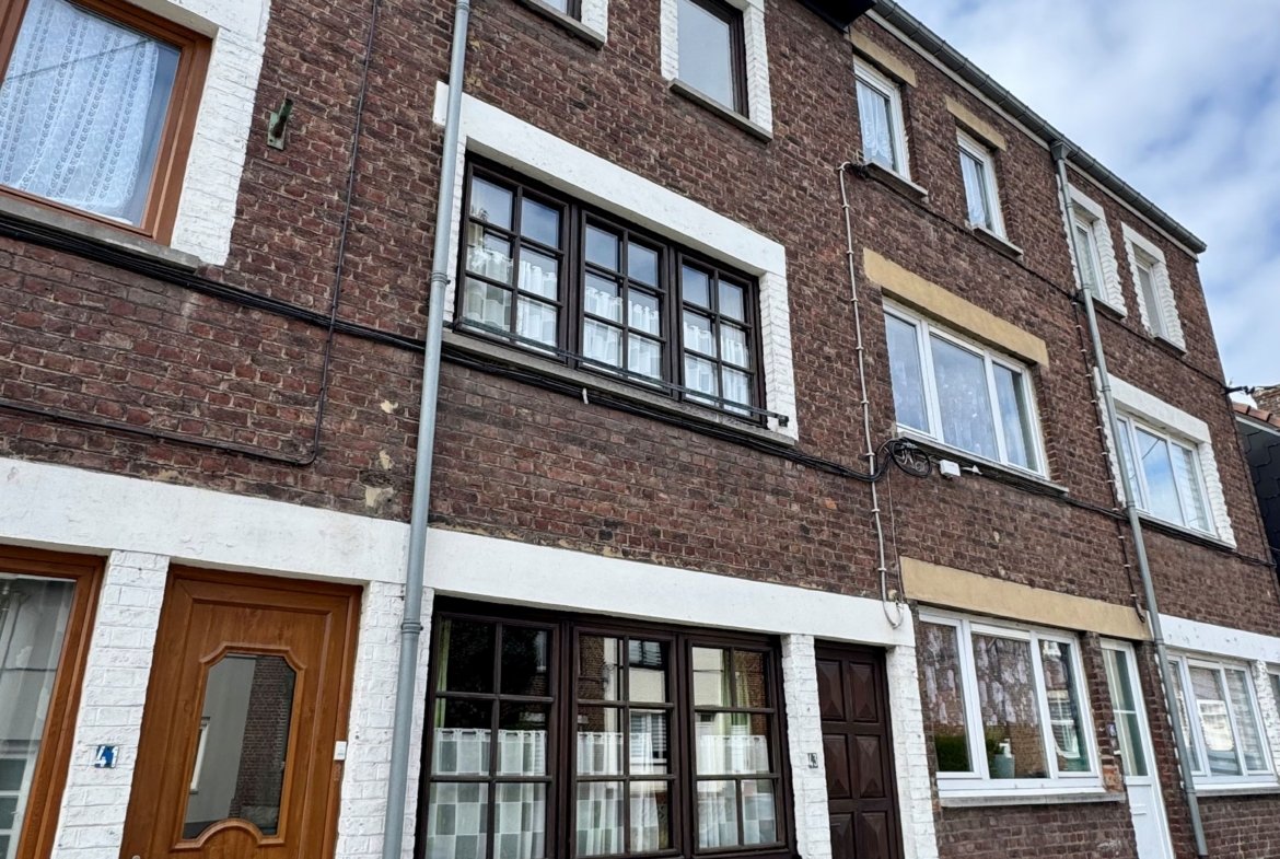 Bonne maison 2 façades de 90m² comprenant 3 chambres, terrasse, jardin et garage 1 voiture non attenant, le tout sur une propriété de 1 are et 46 centiares. Idéale pour un jeune couple ou investisseur. Située au calme, proche des grands axes et de toutes commodités. Frais d’agence de 7865 € TVAC (6500€ HTVA) à charge de l’acquéreur. Offre ferme OBLIGATOIRE (SANS CONDITION SUSPENSIVE).